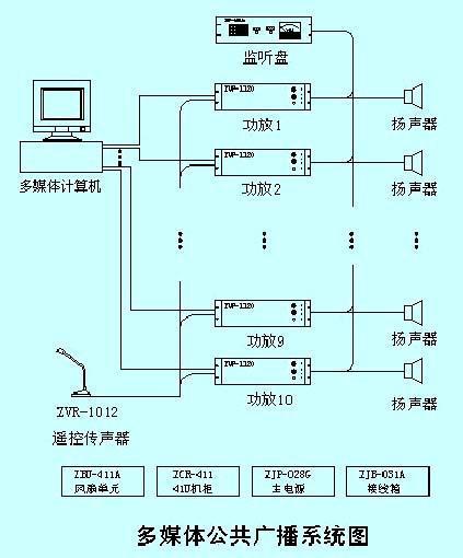 传统公共广播系统是由广播节目源、信号前级放大处理设备、功率放大器、其它周边设备及线路负载(扬声器)组成。