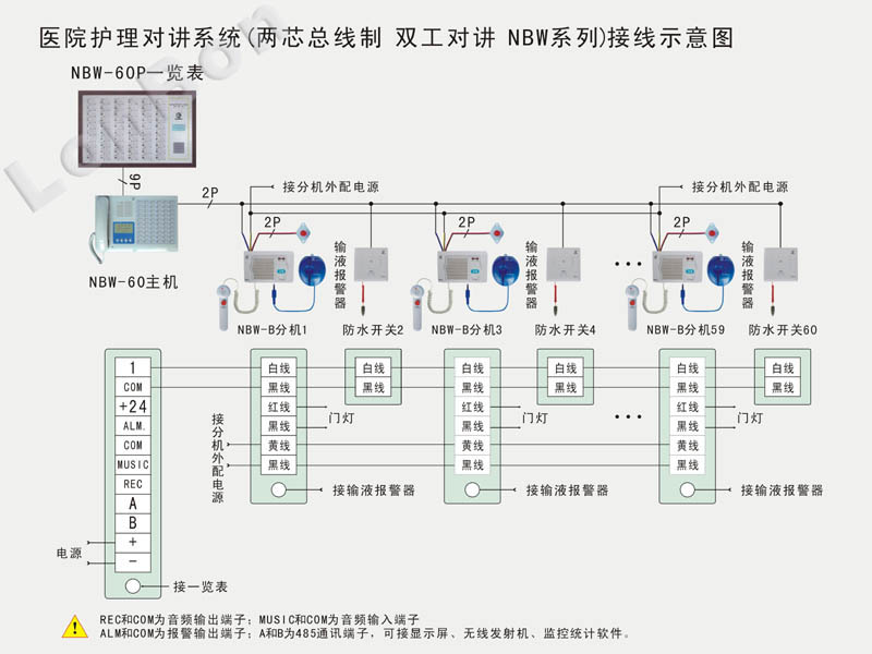 * 一般安装在走廊中,以便于走廊中的护士观察。