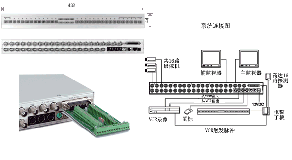 带多路视频输出(1路主输出,4路辅输出),可实现同时在多台监视器上观看多路摄像机的不同画面