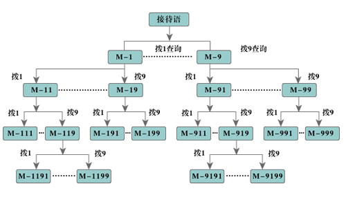 ☉多级多段查询语音,每一查询段落可录制咨询语音或设一个咨询分机号码。