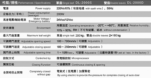 产品简介:**大门扇重量DL-850S(单扇):110KG