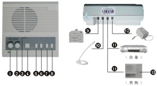 2. 当需要将工作间的内外声音录音时,可由录音插孔⑾输出内外对讲的声音信号(配合银行柜员制)。
