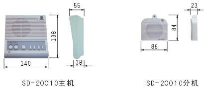 主机外型尺寸:140x138x55mm(LxWxH)     分机外型尺寸:86x84x23mm(LxWxH)