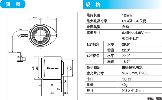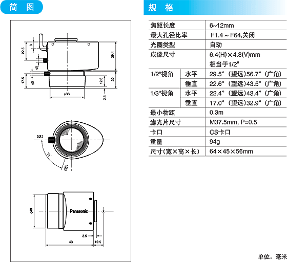 苏州多玛自动门,天津盖泽,深圳必盛,广州瑞可达,南京史丹利,苏州纳博克,杭州格屋,北京(Panasonic)松下自动门,上海自动门,杭州HID,成都西门子,重庆门禁,武汉感应门,西安旋转门,宁波GMT,无锡地弹簧,常州闭门器 当前位置:首页> 产品中心 > 安防报警系统 > 视频监控 > 松下 1/2型镜头