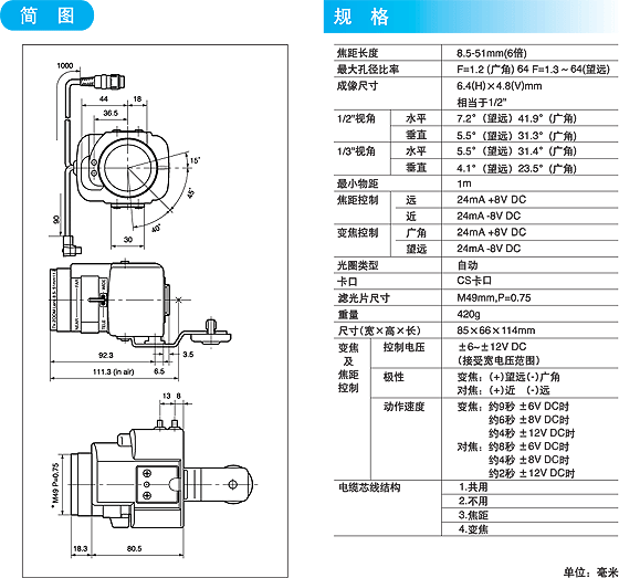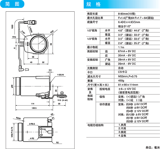 WV-LZ80/2 1/2型2倍可变动焦距自动光圈镜头