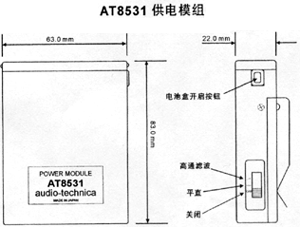 ● AT9750a话筒,配套AT8531供电器使用,可于9V至52V的幻象供电工作,亦可以1.5V电池工作,供电器设有高通滤波选择开关,用以减低自然环境中的低频噪音。